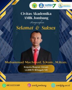 segenap Civitas Akademika Akademi Manajemen Informatika Dan Komputer Jombang menyampaikan ucapan selamat dan sukses kepada: Bapak Muhammad Machmud, S.Kom., M.Kom ...